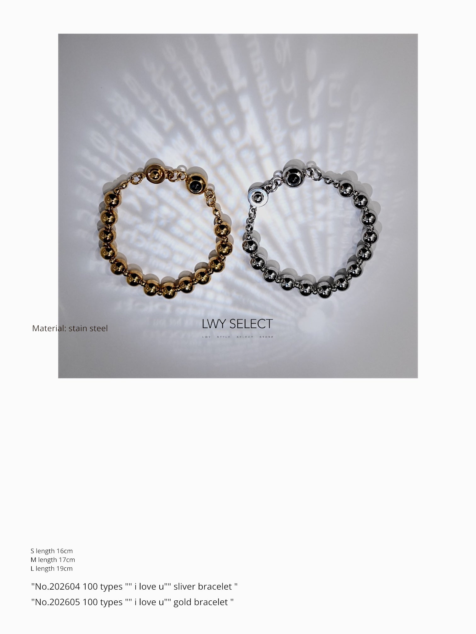 "No.202605 100 types "" i love u"" gold bracelet "